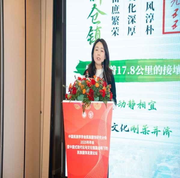 开幕式后,新仓镇党委委员叶丽芳进行地方推介,介绍了“新仓经验”红色文化、服装产业及文旅融合发展成果;中国民族学学会秘书长孔敬传达了学会对民族服饰研究分会的工作要求与批复意见。