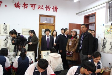 美中文化艺术交流协会带领美国高中代表访问团访问黄岛五中